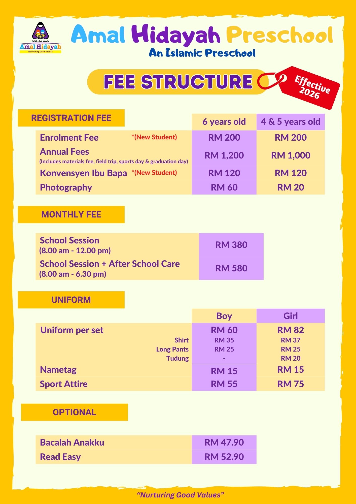 FEE STRUCTURE AMAL HIDAYAH PRESCHOOL 2026