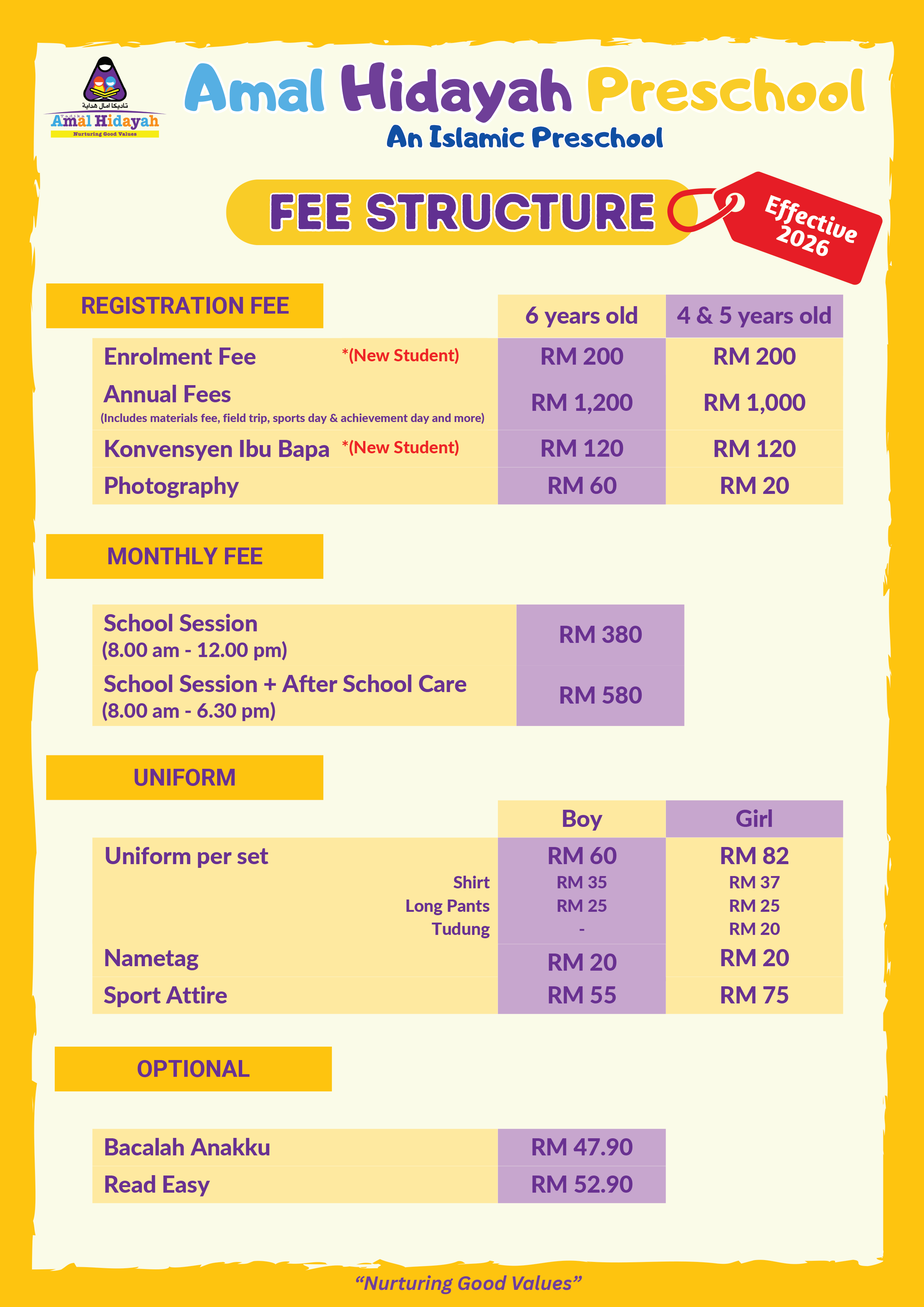 FEE STRUCTURE AMAL HIDAYAH PRESCHOOL 2026